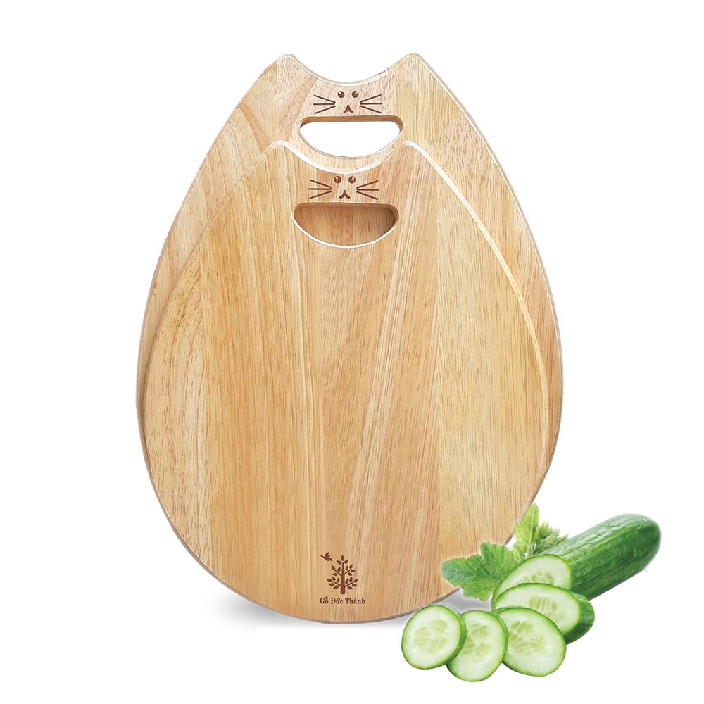Bộ 2 thớt "Mèo mẹ ẵm mèo con" | Gỗ Đức Thành 00321 | Đạt chứng nhận vệ sinh an toàn thực phẩm