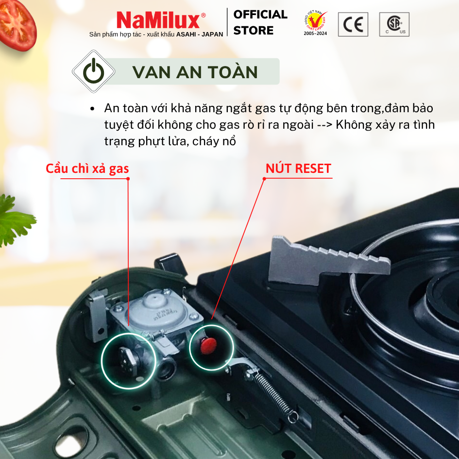 - An toàn: Sử dụng van an toàn 2 cấp đạt tiêu chuẩn an toàn của Hiệp hội gas quốc tế