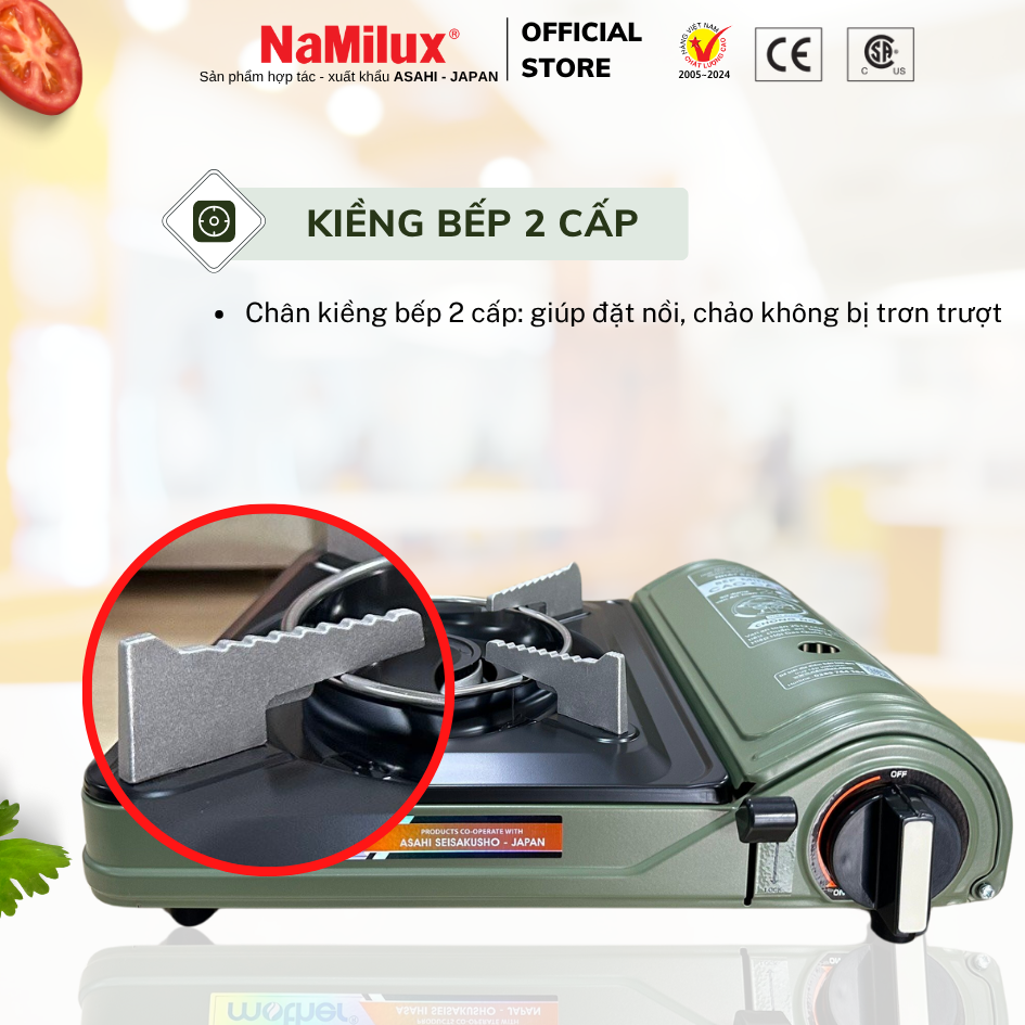 - Chân kiềng bếp 2 cấp giúp đặt nồi, chảo không bị trơn trượt