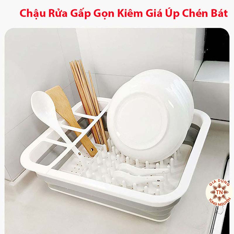 CHẬP ÚP BÁT GẤP GỌN THÔNG MINH KIÊM CHẬU RỬA, GIÚP CHÉN BÁT, ĐŨA, THÌA NHANH CHÓNG KHÔ RÁO, GỌN GÀNG
