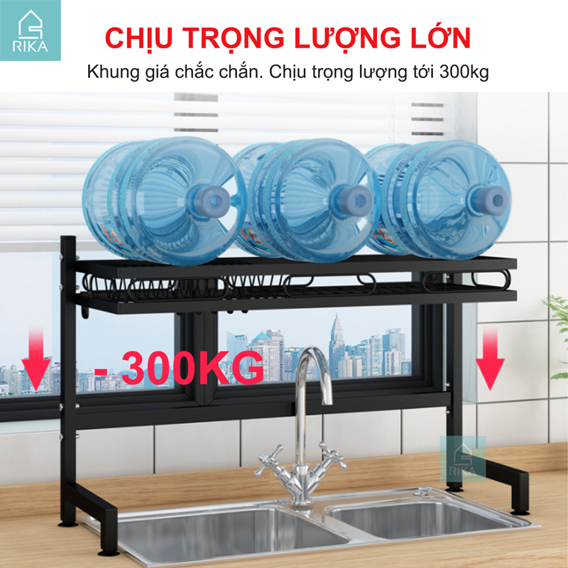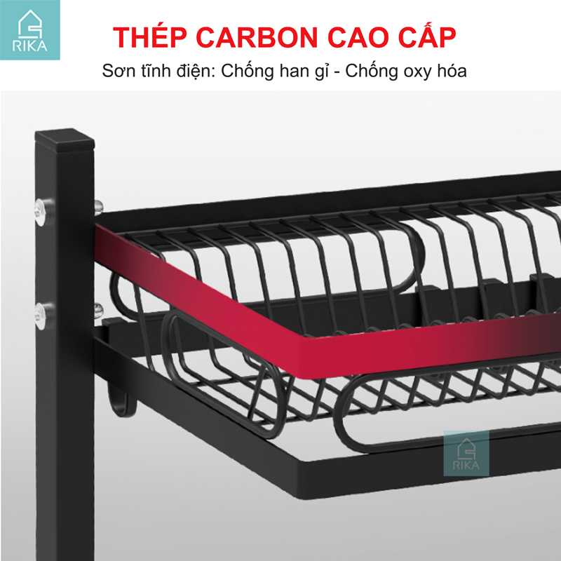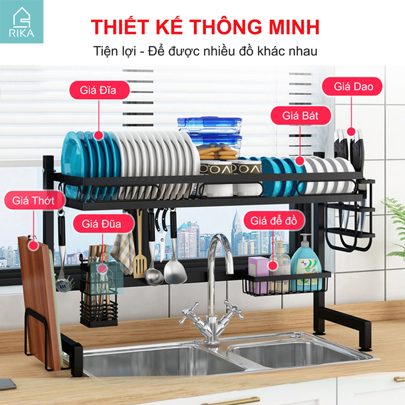 - Thiết kê thông minh để trên bồn rửa tiện lợi, khi bạn rửa bát đũa nồi liêu xong chảo có thể để vào kệ luôn nước dóc xuống bồn rửa chén bát rất sạch sẽ và nhanh gọn.