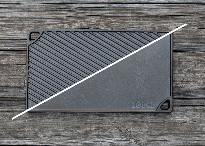 Khay gang nướng đa năng Lodge có lỗ khoét ở hai đầu thuận tiện cho bạn nâng hoặc nhấc khay ra khỏi bếp nướng. Khay gang có thể tạo ra lớp chống dính tự nhiên bằng cách tôi dầu thường xuyên sau mỗi lần sử dụng.