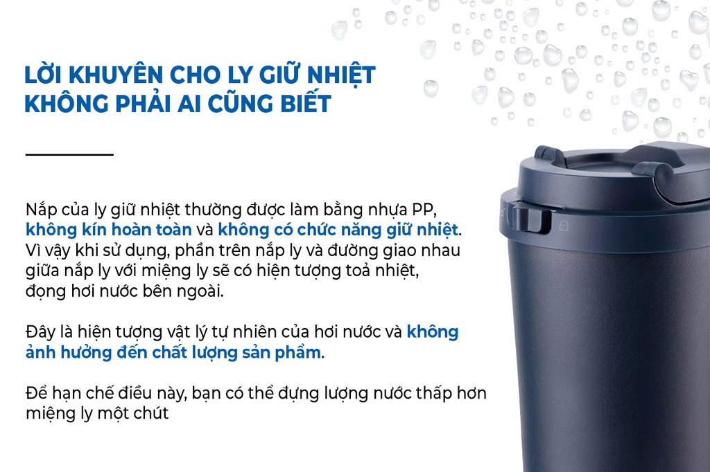 - Hãy sử dụng sản phẩm cẩn thận để tránh bị bỏng khi uống nước nóng. Đóng chặt nắp để tránh làm rò rỉ nước.
