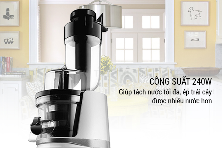 vận hành với công suất 240W giúp tách nước tối đa, ép trái cây được nhiều nước hơn. Ép sạch nước và nhanh gọn trong thời gian ngắn. Sản phẩm trang bị 2 tốc độ ép, tốc độ 1 dùng để ép những loại trái cây mềm như dây tây, chuối, tốc độ 2 dùng để ép những loại trái cây cứng như táo, cà rốt, lê,