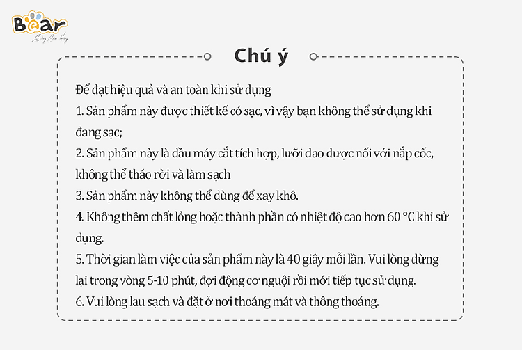 Một số lưu ý khi sử dụng cốc xay cầm tay mini Bear LLJ-B03C1 (LLJ-P03H1)