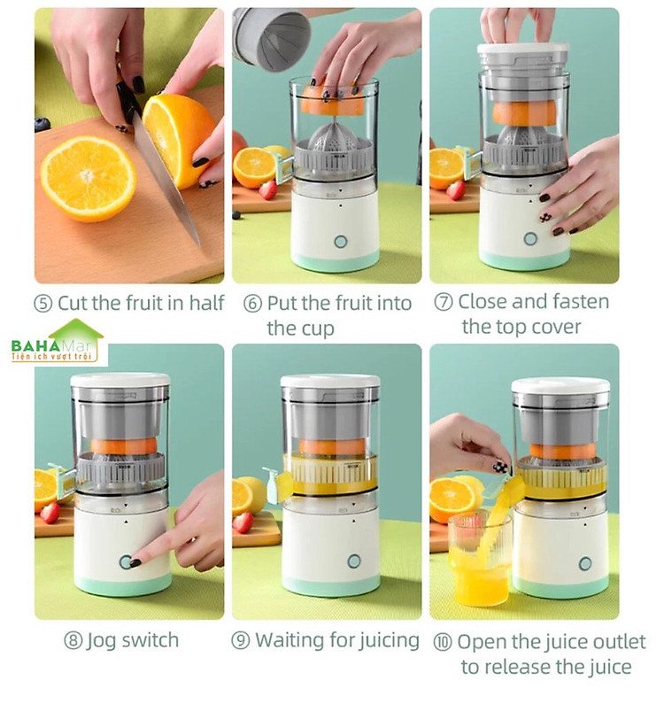 1. Nguồn điện USB thân thiện với môi trường và tiết kiệm năng lượng. Việc chiết xuất nước ép dễ dàng và nhanh chóng là bạn đã có ngay một cốc nước ép tươi ngon mà không cần lo lắng về chất phụ gia. 2. Khi bạn nhận được sản phẩm của chúng tôi, vui lòng sử dụng sau khi sạc trong 2 giờ 3. Trong quá trình ép, nắp trên và thân cốc bị rung lắc là hiện tượng bình thường, và đó là thiết kế đệm cho lực tác động và lực phản ứng. 4. Nhấn và giữ công tắc trong 2 giây, máy sẽ tắt và đèn báo sẽ tắt; máy cũng sẽ tự động tắt nếu không có thao tác nào trong 5 phút. 5. Sau khi làm sạch sản phẩm, vui lòng lau khô các bộ phận của sản phẩm hoặc để khô không gian, sau đó lắp ráp lại, đặt ở nơi khô ráo, thoáng mát và thông gió để bảo quản.