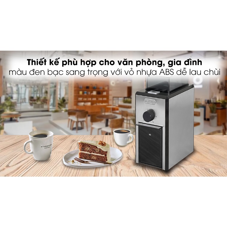Máy xay cà phê Delonghi KG89 được thiết kế nhỏ gọn, phù hợp với gia đình và văn phòng.