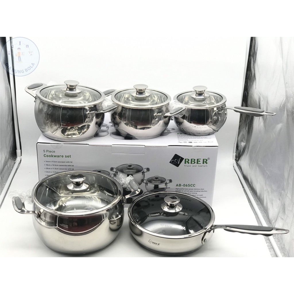 Giới thiệu Bộ Nồi ARBER 5 Món Cao Cấp AB-06SCC - Có Nắp Vung Kính