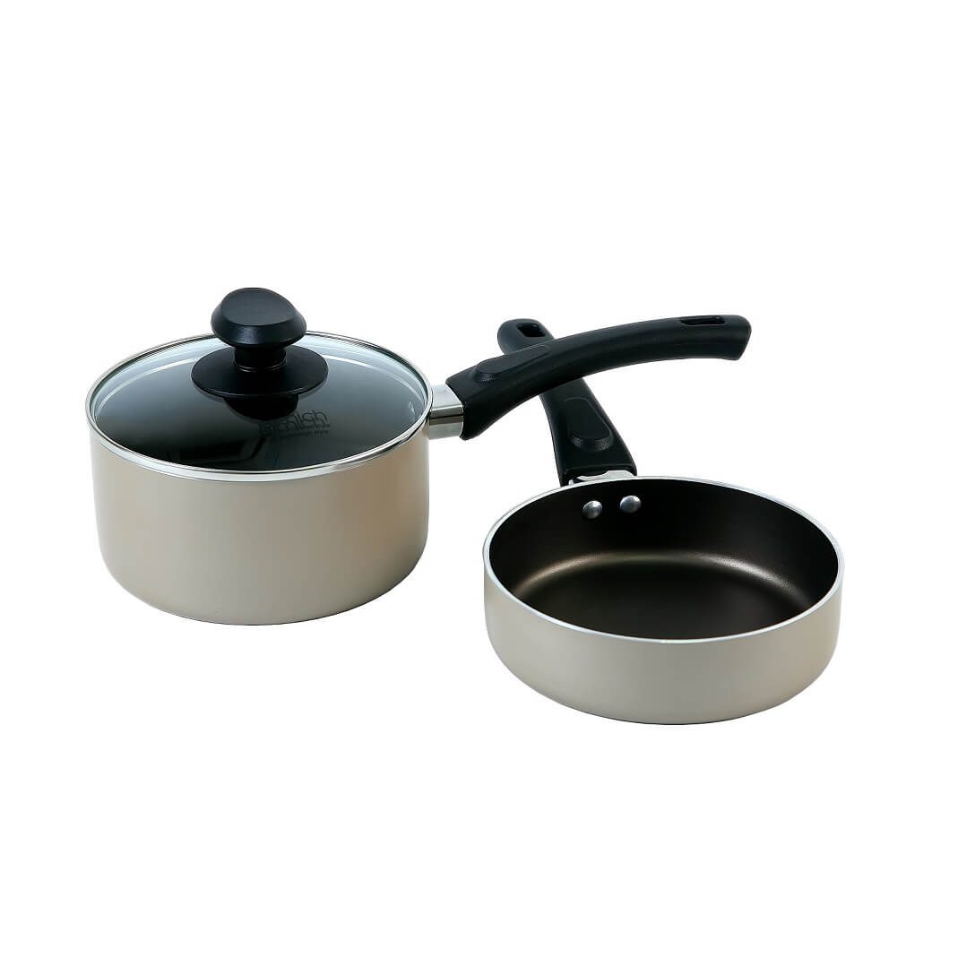 Bộ nồi chảo Baby : gồm 1 quánh đường kính 16cm và 1 chảo đường kính 16cm.