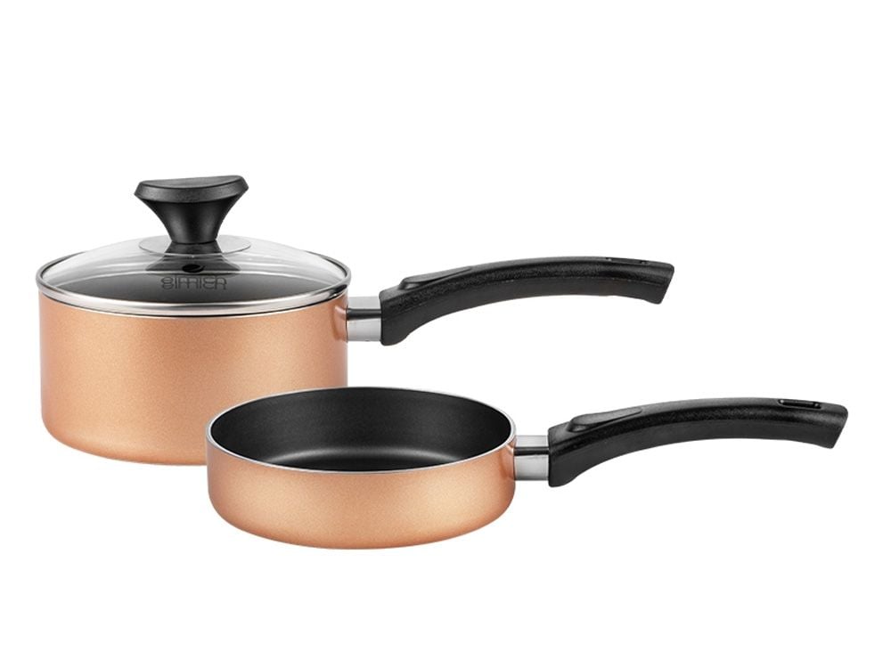 Bộ nồi chảo Baby EL- 1167 gồm 1 quánh đường kính 16cm và 1 chảo đường kính 16cm.
