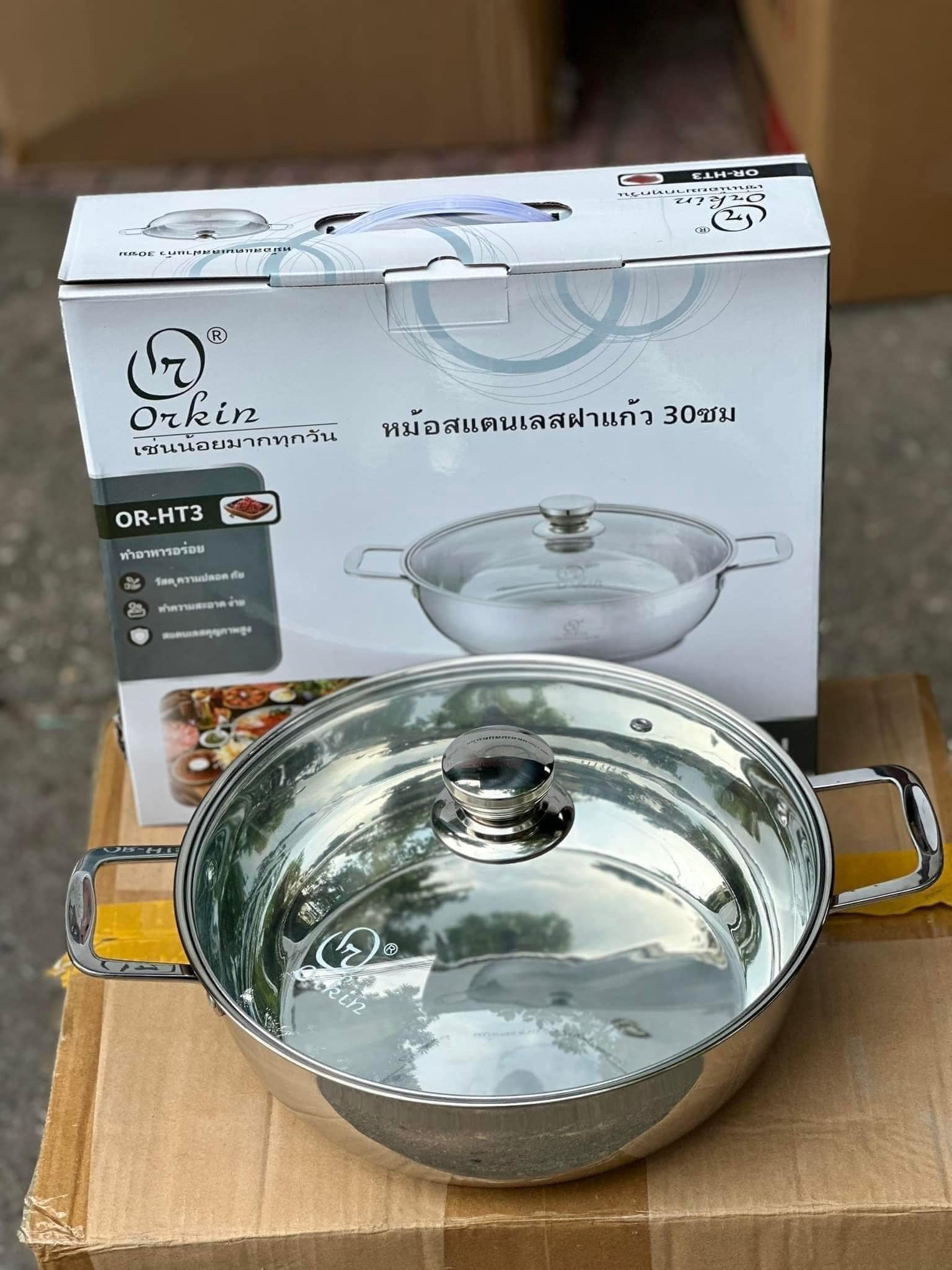 Nồi Lẩu Thái ORKIN 3 Đáy iNOX 304 và nồi lẩu 1 đáy Đường Kính 30Cm, Sử Dụng Các Loại BếpTên sản phẩm: Chảo lẩu Inox đáy từModel: OR-HT3Thương hiệu: Orkin Thái LanCông nghệ sản xuất Thái LanKích t...