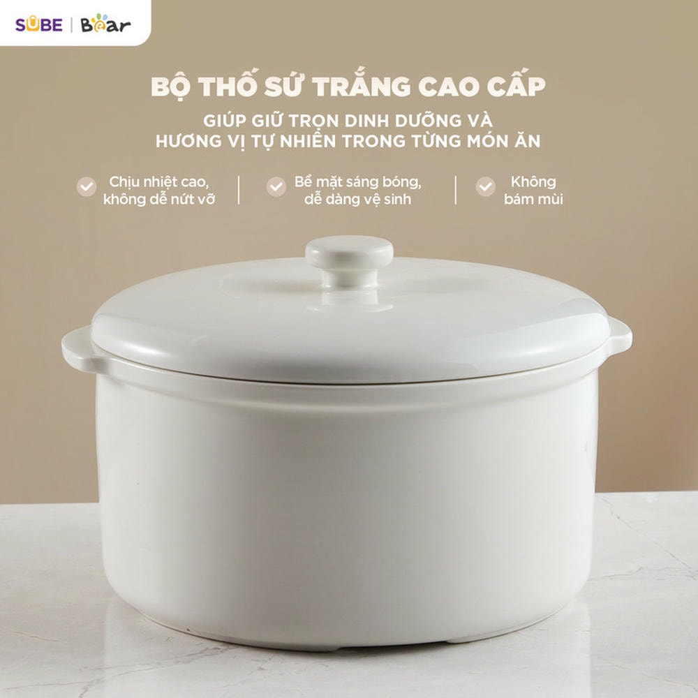 Nồi nấu chậm Bear 2.5L SC-5H25M34 ứng dụng công nghệ gia nhiệt 360° và van vi áp thông minh, giúp giữ trọn dưỡng chất trong từng món ăn. Với thiết kế đa năng 4+1 thố sứ, 10 chế độ nấu tự động và chức năng hẹn giờ lên đến 9.5 tiếng, sản phẩm là lựa chọn lý tưởng cho gia đình bận rộn.
