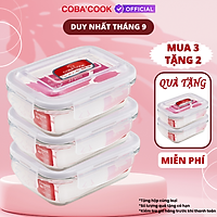 Bộ 3 hộp chữ nhật 370ml đựng cơm kèm túi hộp thủy tinh giữ nhiệt COBA'COOK- XẢ KHO