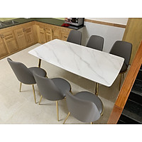 Bàn ăn mặt đá Ceramic bóng kết hợp ghế loft bi