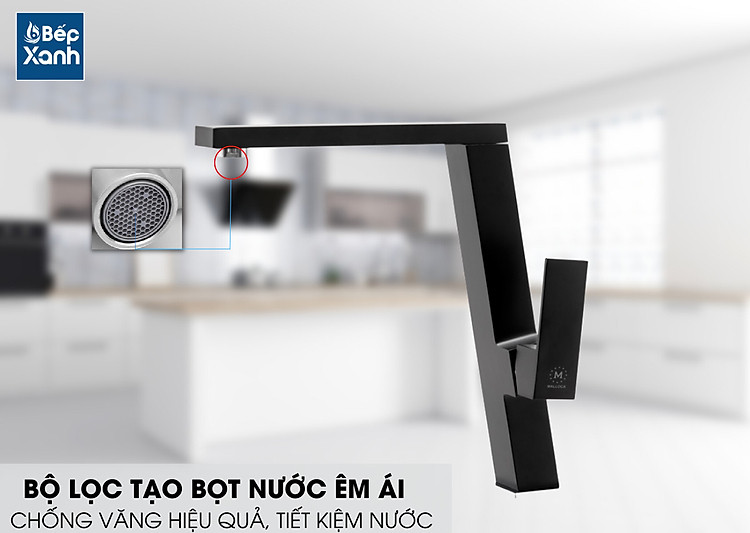 Thiết kế đầu vòi rửa có hình vuông, đồng bộ với thiết kế của thân vòi, đặc biệt bộ phận này được tích hợp bộ lọc có khả năng tạo bọt nước giúp nâng cao hiệu quả rửa sạch, tiết kiệm nước hiệu quả. Kết hợp với cần gạt, bạn dễ dàng điều chỉnh mức nước xả ra phù hợp với nhu cầu sử dụng.